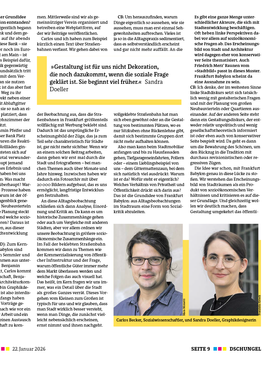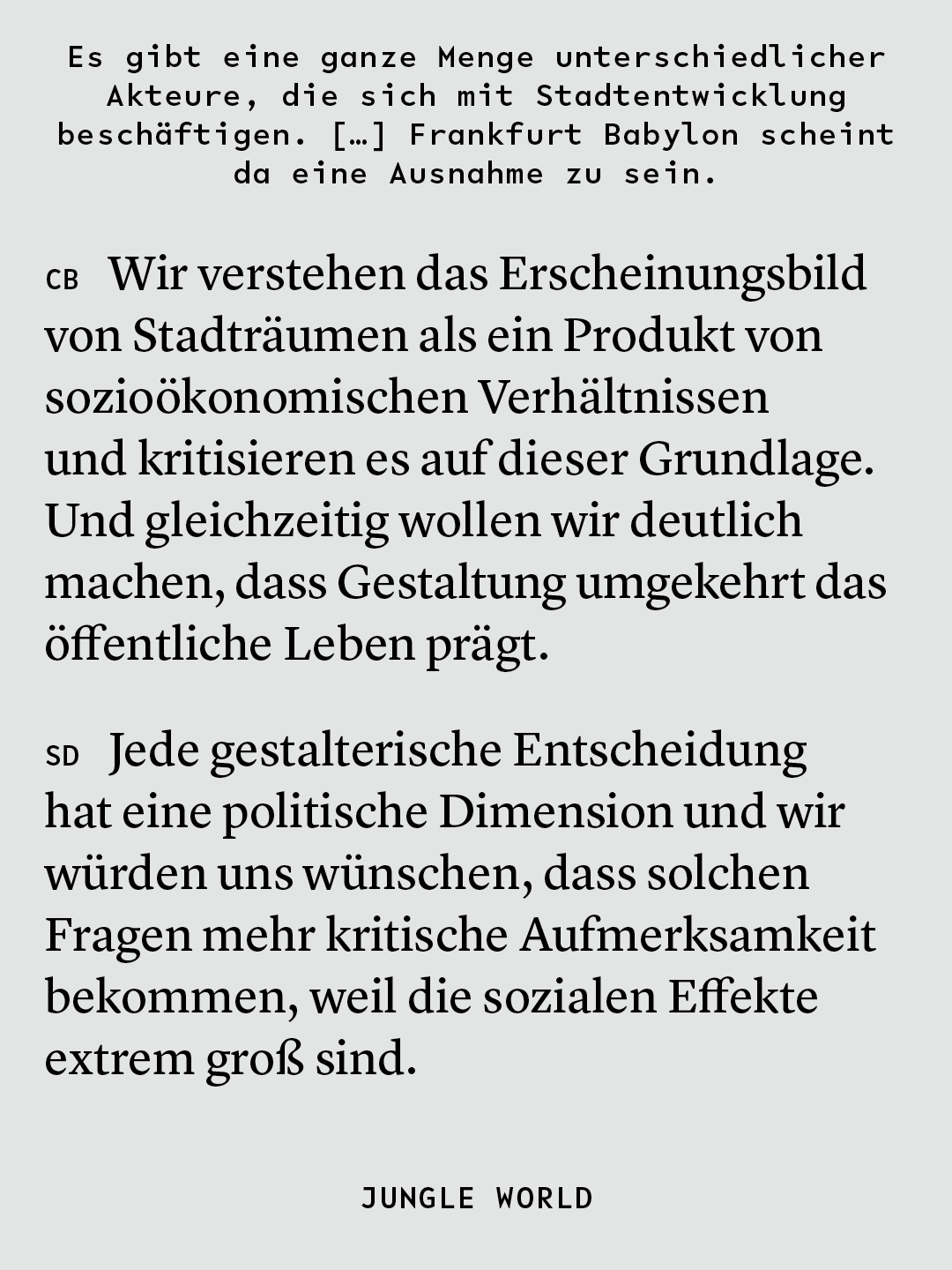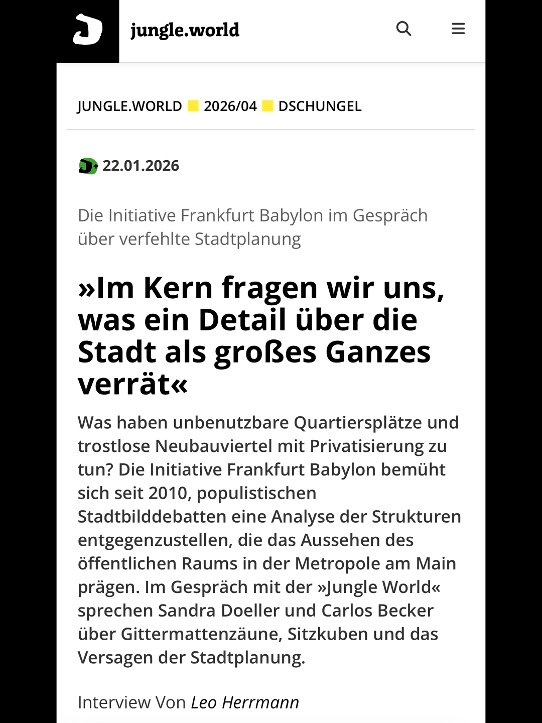 Frankfurt Babylon im Interview mit der Jungle World, Ausgabe 4/2026