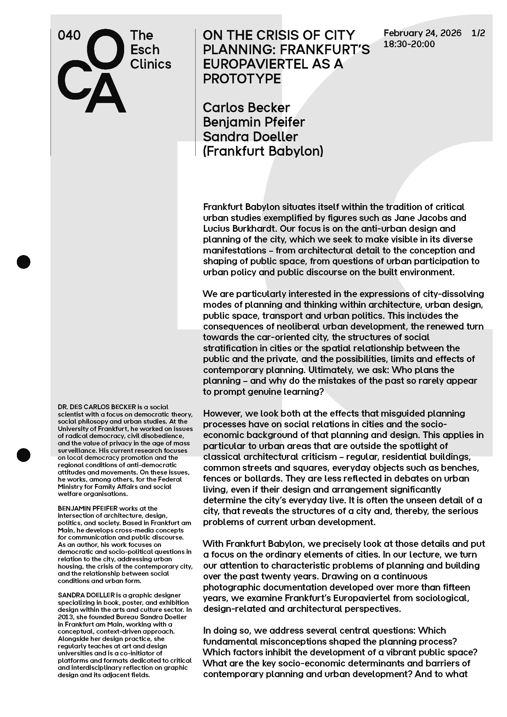 Über den Vortrag am 24. Februar 2026 hinaus wird sich Frankfurt Babylon in einem Beitrag für die Abschlusspublikation mit dem städtebaulichen Wandel von Esch-sur-Alzette befassen.